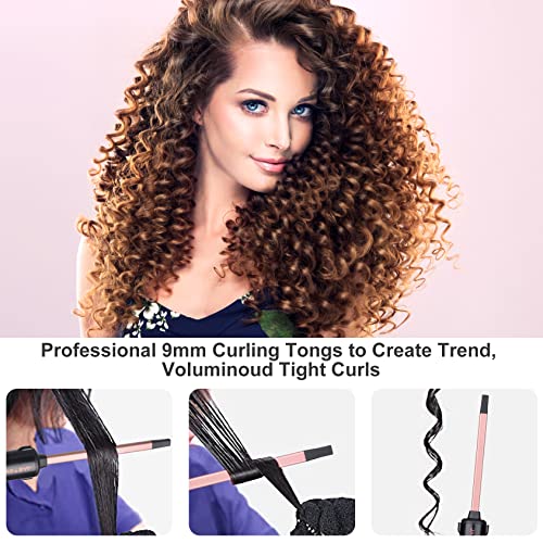 Home Hair Care Curling Wand 9MM, Thin Curling Iron, Tight Curls LCD Display 100-230°C for All Hair Types, Tourmaline Ceramic Barrel 30-Second Heat-Up, Long&Shor