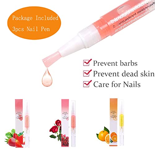 - ❤3 Different Fragrance Cuticle Oil Pen Set - This Cuticle oil pens bulk is perfect for nail care, and it will effectively prevent nail cracking, repair the cuticle, reduce epidermal wrinkles, and promote healthy nail growth. This package included 3 kinds of taste: Rose, Strawberry, and Orange.