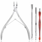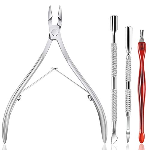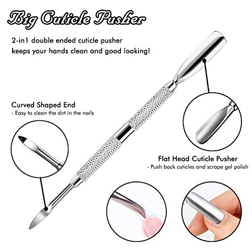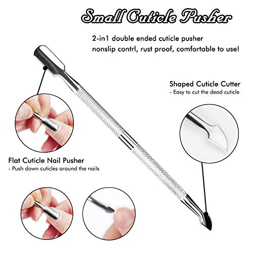 - 【4 IN 1 MANICURE KIT】This manicure kit offers 1pc stainless steel cuticle remover, 1pc cuticle trimmer V shaped, 2pcs nail cuticle pusher with different functions, perfect tools for beautify you fingernails and toenails.
