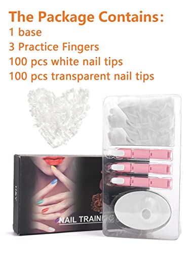 - 🌸【Professional Nail Art Finger Tools】The Practice Finger Set contains 3 nail fingers,1 finger base, 200 pieces of replacement acrylic nail tips(white and transparent).This nail art finger set can satisfy your nail art practice.