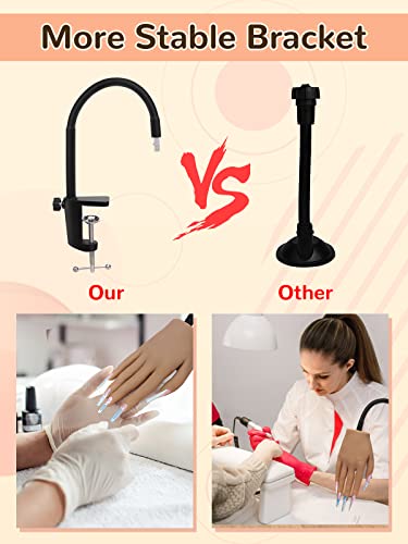 - 🌷【Fixed Bracket】The silicone manicure training hand with a detachable and adjustable bracket, which can be bent at any angle, no need to buy table clips separately, and it is more convenient to use.