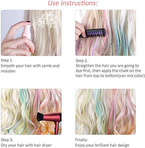 - 1.[The perfect gift] - The childrens hair colour spray is a unique gift. The Girl's Hair Chalk Color Set contains 10 amazing colors, so you can create your own color scheme that perfectly complements your look. These rainbow hair chalks are the perfect gift for birthdays, Valentine's Day, Easter, Halloween, Christmas, New Year for kids and teens from 3 years old and up.