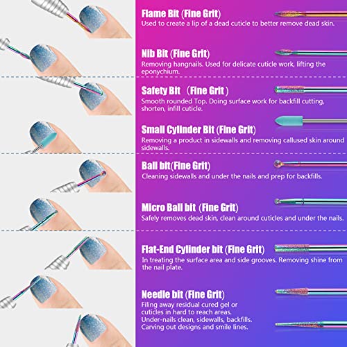 - Long-Lasting: The nail bits for nail drill are made of premium material, sharp, durable, and also crafted with delicate.The rainbow diamond carbide bits with durable and superior strength, The ceramic bits with excellent heat dissipation, sturdy enough to remove hard gel nails. With Good Care, You can use them for a long time.