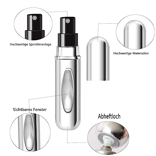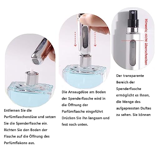 - - Refillable perfume bottles: with the 4 pieces of 5 ml perfume atomisers, you always have your favourite fragrances with you.