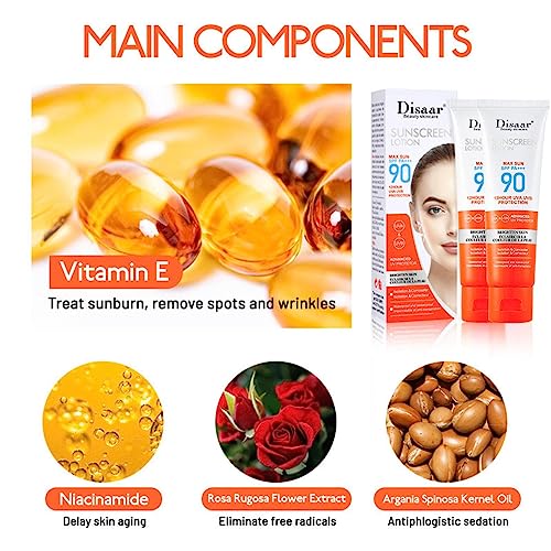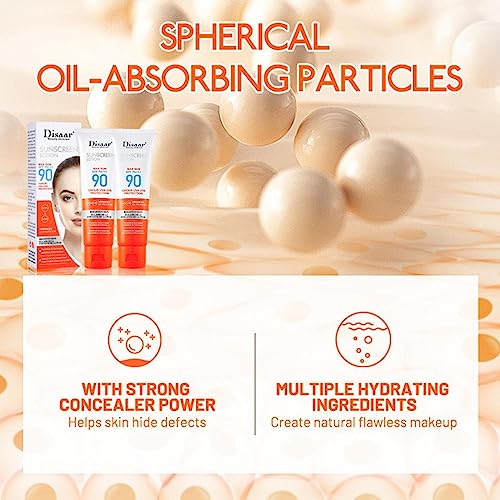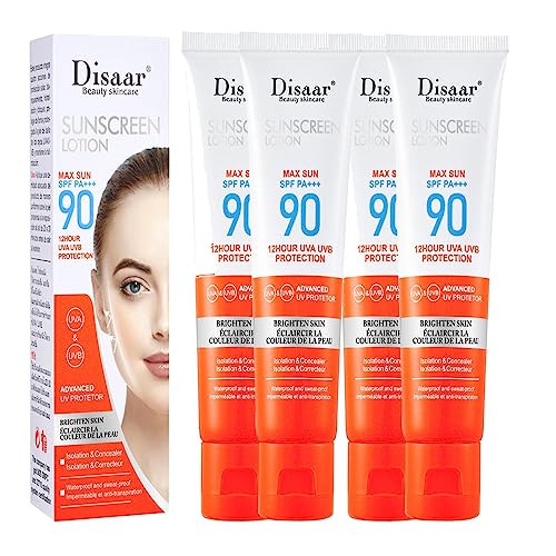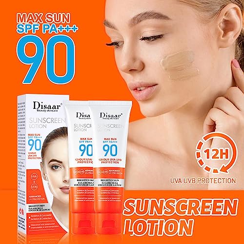 Disaar Whitening Sunscreen SPF 90+,Sun Cream, Sunscreen for Face Waterproof, Sweat-Proof,and Refreshing Non-Greasy - Lightweight,Disaar Sunscreen