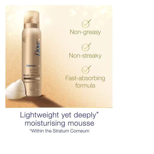- Dove- Gradual Self tan body mousse is a gradual buildable formula that gives you a natural-looking tan skin so you can glow with confidence.<br>