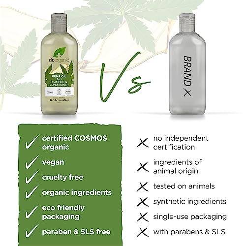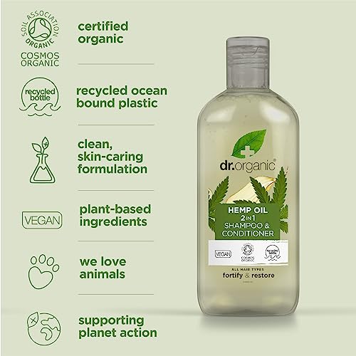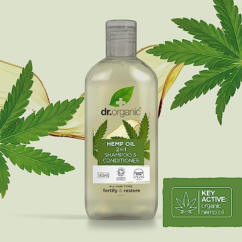 Dr Organic, Organic Hemp Oil 2 in 1 Shampoo & Conditioner , Natural , Vegan , Cruelty Free , Paraben & SLS Free , Eco Friendly Recyclable Packagi