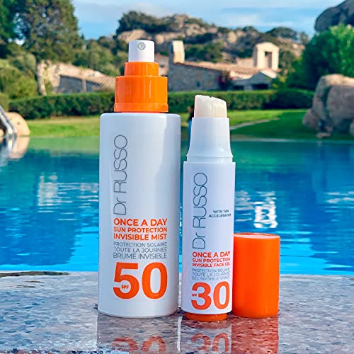 - Protect, repair and moisturise your complexion with an SPF 30 (also available in SPF 50) spray mist carefully developed by Dr Russo, London’s leading Harley Street cosmetic surgeon