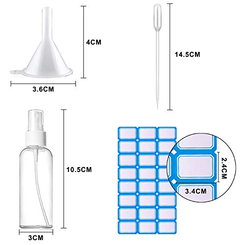 - Convenient to use - come in 4 pieces funnel which make it easy to transfer the liquids you need in it and reduce waste, 4 pieces dropper are ideal for controlling or mixing the liquids, the labels are useful for distinguishing the content in each spray bottle and the lovely transparent zipper bag can help you sort out your spray bottles
