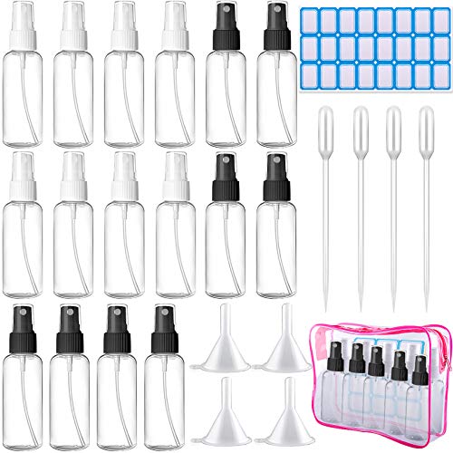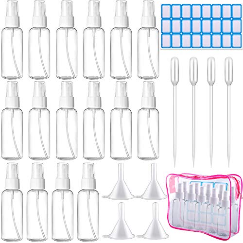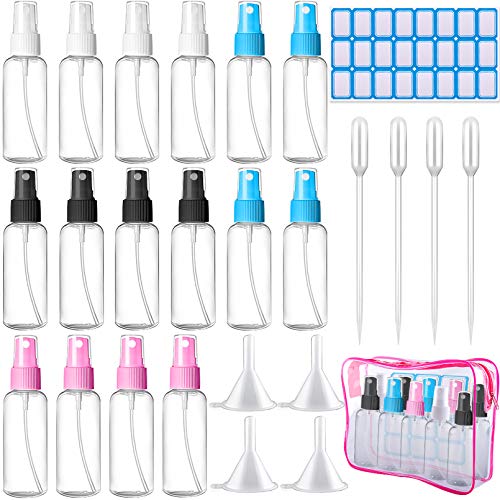 - Practical travel bottle set - come in 16 pcs 50ml empty spray bottles, 4 pieces funnels, 4 pieces droppers and 24 pieces labels with a pink transparent zipper bag for collect and carry, ideal for travel