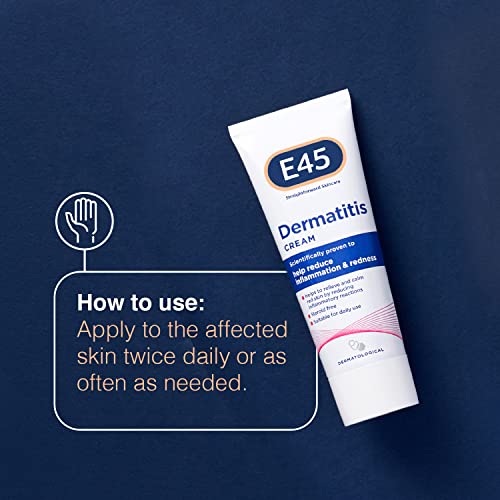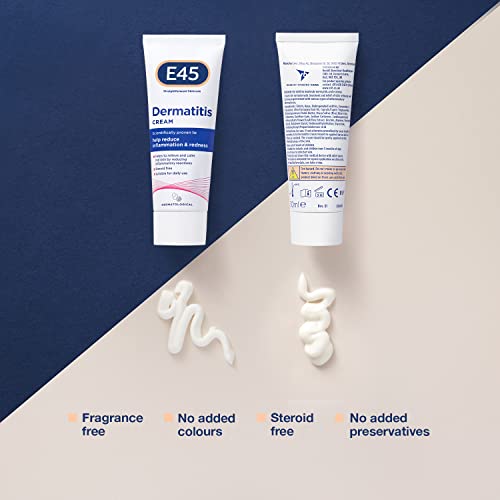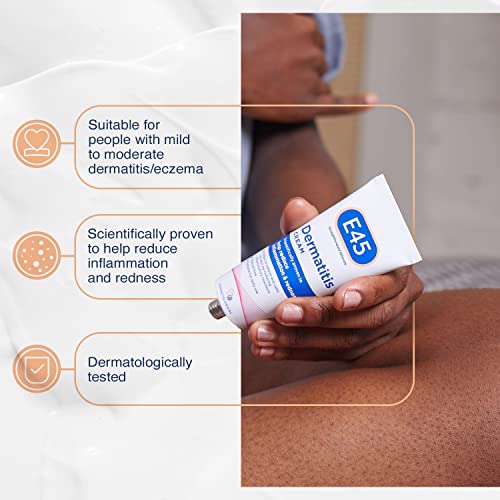 - REDUCE INFLAMMATION AND REDNESS – E45 Dermatitis Cream has been formulated for symptomatic treatment and relief of skin redness and itching that comes with various types of inflammatory dermatoses. Our cream is scientifically proven to support repair of the skin barrier and to help reduce inflammation and redness. The cream has anti-inflammatory properties to calm dry, itchy, flaky or red skin.