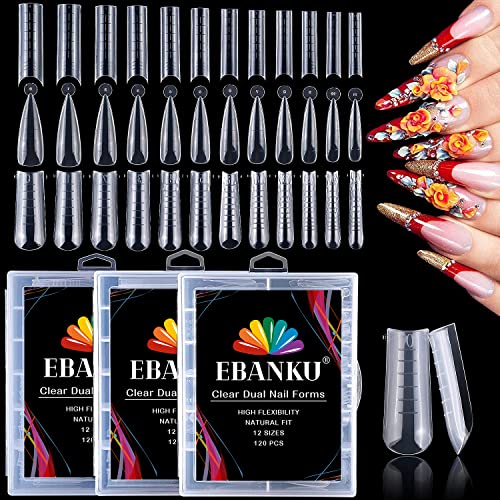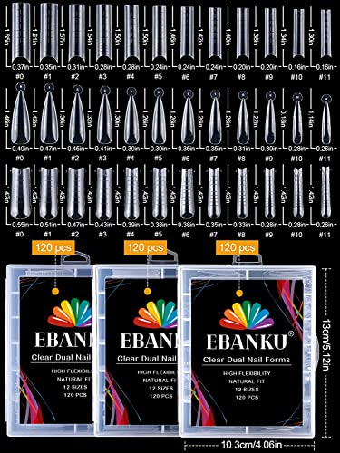 - Package Content: You will get 1 box of stiletto shape nail form, 1 box of square gel nail form, 1 box of C curve nail form, totally 3 boxes 360pcs clear double nail form system.