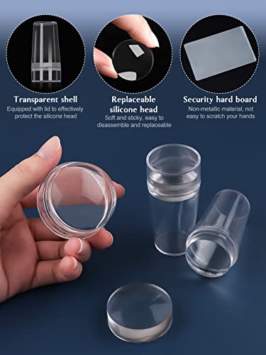 EBANKU 3PCS Clear Nail Stamper Silicone Jelly Stampers with 4PCS Scrapers and 3PCS Silicone Replace Nail Art Stamper Heads for Manicure Tools