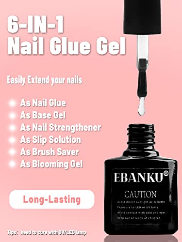 - 【6 In 1 Nail Gel Glue】This multi-functional nail glue is not only for nail tip adhesive, but also can be used as a nail glue, base coat, a blooming gel, nail strengthener, slip solution, brush saver, and nail glue is convenient to operate and easy to carry out so you can design your nail art wherever you like.