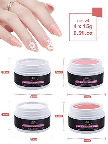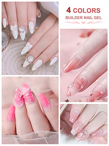 EBANKU Hard Builder Gel for Nails, 4 Colors Non-Sticky Hand Nail Extension Solid Builder Gel Clear Nude White Pink Hard Builder Gel Nail Extensio EBANKU Hard Builder Gel for Nails, 4 Colors Non-Sticky Hand Nail Extension Solid Builder Gel Clear Nude White Pink Hard Builder Gel Nail Extensio