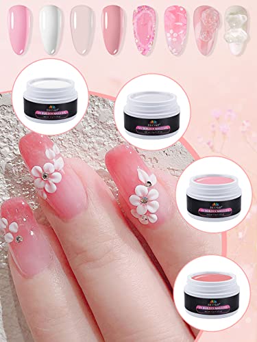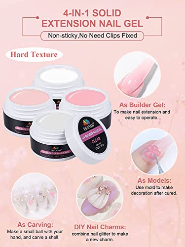 EBANKU Hard Builder Gel for Nails, 4 Colors Non-Sticky Hand Nail Extension Solid Builder Gel Clear Nude White Pink Hard Builder Gel Nail Extensio