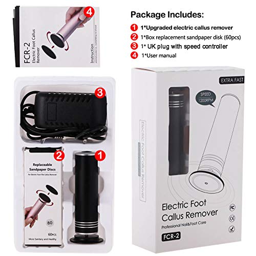 - 60pcs Replaceable sanding paper discs:This model electric foot file machine come with replaceable sanding paper dics,you do not need to cleaning it,after you use it.It is more convenient for you to use and save your time.