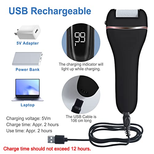 - LED Display & USB Charging Callus Remover: High quality 1200mah large capacity lithium battery, you can see how much battery left. It is equipped with an LED lighting so that you will see what you are working on day or night. The USB charging time for 4 hours, and can run continuously for about 240 minutes. Notes: please fully charge using this product for the first time can protect your battery.