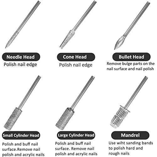 • ➤【 Professional Nail Drill Set】: Coming with 5 x different drill bits, 1 x metal sand ring shaft, 6 x sand ring. It is can be used for manicure, pedicure, polishing, shaping and removing excess cuticles, or pet nail beauty, and so on.