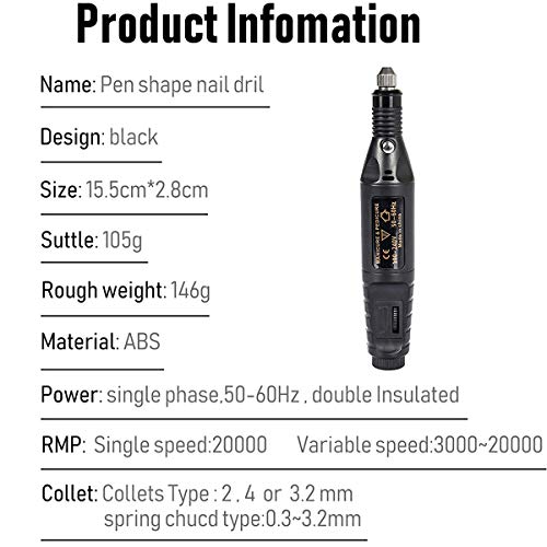 • ➤【Adjustable Speed & Safety 】: Nail Manicure Drill has 3000-15000RPM with a speed control button, which makes this electric nail file easier and safer to remove your nail gel without harming natural nails. High-tech nail drill machine stable quality, low voice, and slight vibration when manicure.