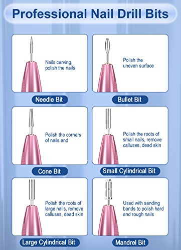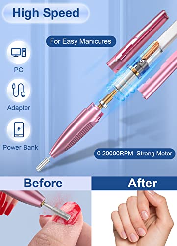 Electric Nail Files, Linkax Cordless Portable Nail Drill, Electric Nail Drill for Acrylic Nails, Rechargeable Manicure Pedicure Kit for Shaping,