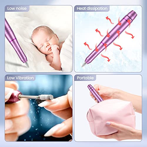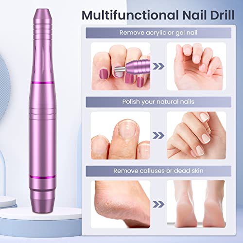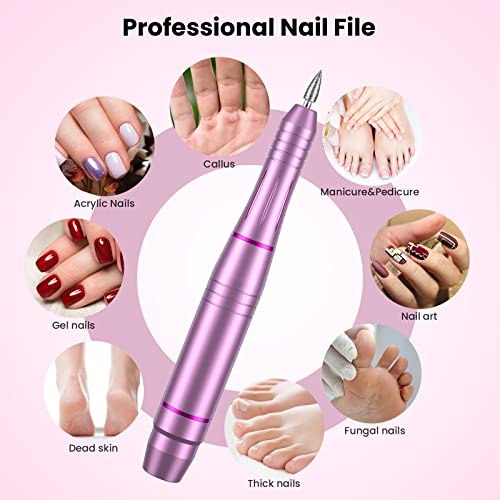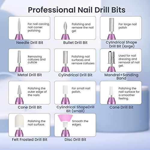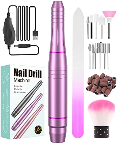 - 🍒【Upgraded Electric Nail Drill】- Come with 11 different nail drills bits, 26 sanding bands, 1 brush, 1 glass nail files. 5 colors for your choice! These electric nail files can be used for manicures, pedicures, polishing, shaping, grinding cuticles, removing acrylic/gel nails, or for nail beauty. Perfect for both natural and artificial nails and make it easy to treat your nails at home!