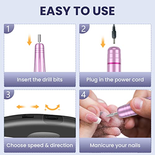 - Adjustable Speed & Direction: Easy to choose speed setting from 0-20,000 RPM and the design with Forward and Reverse rotation directions is suitable for both right-handed and left-handed. It makes this electric nail file easier and safer to smooth your nails.