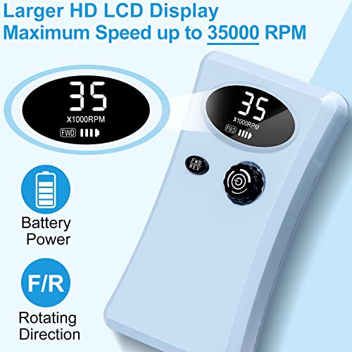 • ★【Adjustable Speed】 Set your desired speed by turning the dial, stepless speed adjustment from 0 to 35,000RPM to meet your different needs, forward and reverse direction can be selected at will (F/R), suitable for left and right handed use. Professional manicure machine for home and nail salon use.