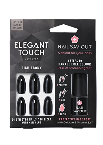 Home Nail Care Elegant Touch with Nail Saviour & Nail Glue, False Nails (24 Nails) – Deepest Sapphire