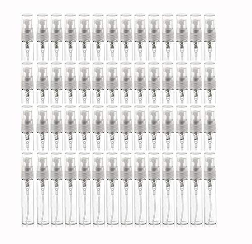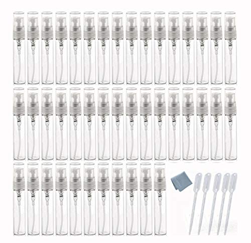 - Pack of 50pcs Empty Glass 5ml Fine Mist Spray Bottles + 1pc clean cloth + 5pcs 3ml pipette Tool