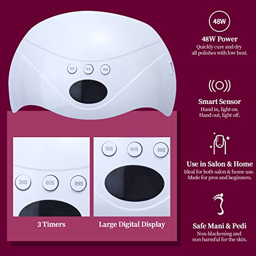 • 3 MODES UV LED LAMP FOR MULTI REQUIREMENTS - according to the DIY needs, 30/60/99 seconds timer let you control the curing time with each layer. 3 modes for better cure the gel polish.