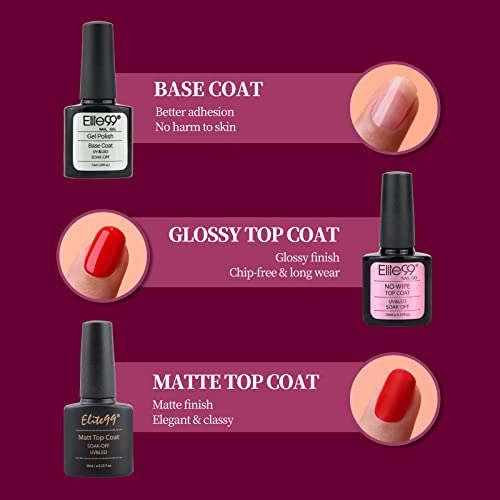 Elite99 Gel Nail Polishes Starter Kit, Colors Nail Salon Set with 48W Nail Lamp,Red Nude Pink Gel Nail Polish Kits with Glossy Matte Top Coat Bas
