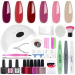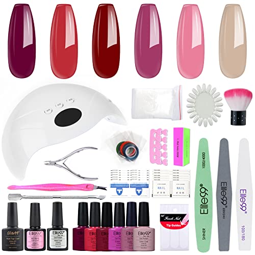 Elite99 Gel Nail Polishes Starter Kit, Colors Nail Salon Set with 48W Nail Lamp,Red Nude Pink Gel Nail Polish Kits with Glossy Matte Top Coat Bas Elite99 Gel Nail Polishes Starter Kit, Colors Nail Salon Set with 48W Nail Lamp,Red Nude Pink Gel Nail Polish Kits with Glossy Matte Top Coat Bas