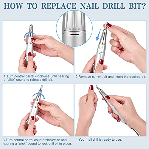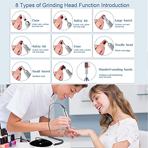 - 【Professional Electric Nail Drill Set】 The electric nail drill comes with 6 commonly used polishing heads, 2 ceramic polishing heads (The ceramic polishing head is sturdy and durable, with strong heat dissipation), 56 sanding belts high quality and 1 handle bracket. This electric nail drill can be used for manicure, pedicure, polishing and excess cuticle removal, etc. It allows you to easily enjoy the joy of nail art at home.