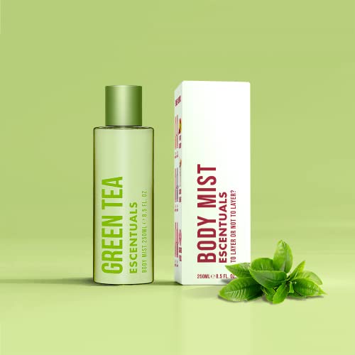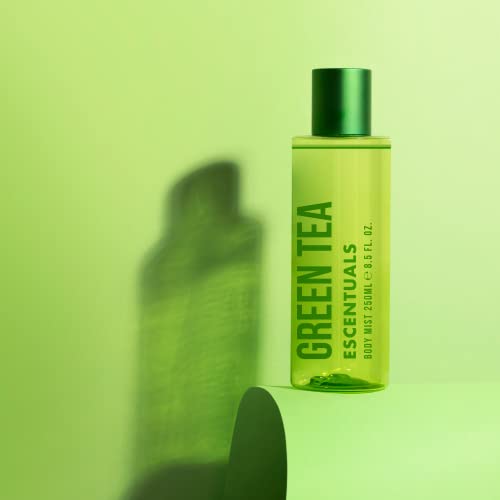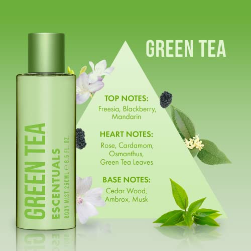 - REJUVINATING & REVIVING: Escentuals Green Tea opens with clean notes of freesia and mandarin, leading to a heart of cardamom and Osmanthus. Satisfy this relaxing scent with gentle notes of cedar and musk.