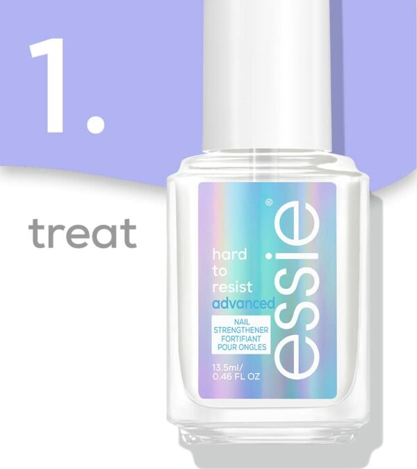 - essie Hard To Resist Advanced, a strengthening treatment to care for and protect weak, damaged nails
