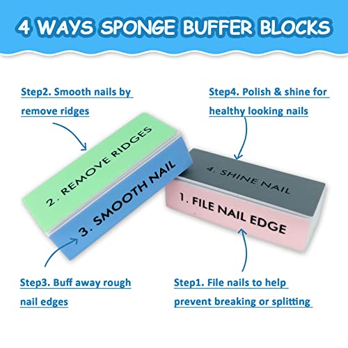- ❤️【4 Ways Sponge Buffer Blocks】File nail edge, Remove ridges, Smooth nail, Shine nail - easy to make your nails a high gloss shine without polishing top coat, that can last one week.