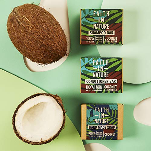 Faith In Nature Natural Coconut & Shea Butter Conditioner Bar, Hydrating, Vegan & Cruelty Free, No SLS or Parabens, For Normal to Dry Hair, 85g