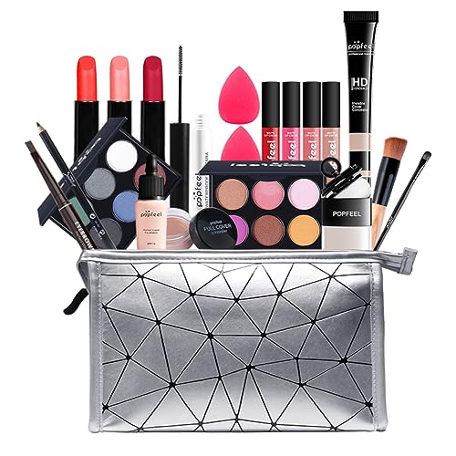 - π γ ALL IN ONE MAKEUP KIT γ -- Contains a wide variety of shades and styles, to let you find the look that suits you best. This cosmetics include 40 Eyeshadow Palette, 18 Lipstick, 3 Lipgloss, 6 Pressed powder, 15 Cream Concealer, 4 makeup brush, 3 Face Makeup, Eyebrow cream, Concealer stick, Eyebrow pencil, Lip Balm, Mascara, Primer, Eyebrow pencil, Powder puff, Travel Bag. The most sweetest present for your beloved. All women's essentials in one elegant box and a great gift for any occasion.
