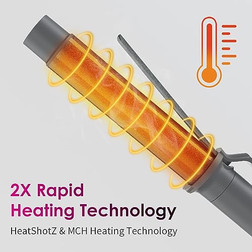 - [2x Rapid Heating Tech] Our HeatShotZ heating tech and MCH element design offer an unprecedented curling experience. The curling iron heat up to 120°C in 18s, creating perfect waves in just 12s. The MCU chip and intelligent NTC check and reheat the temperature every 4s to maintain a constant heat level. This ensures rapid, flawless curls that last longer.