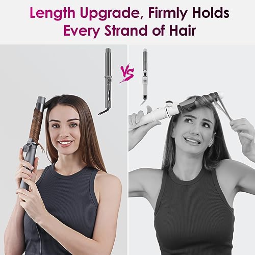 - [Easy to Use] Clamp Length Upgrade to 117mm, Firmly Holds Every Strand of Hair,eliminating the issue of hair slipping commonly experienced with traditional models. Moreover, we extended the Curling wand heating barrel to 140mm, enabling coverage of more hair and saving you over 50% of the time.