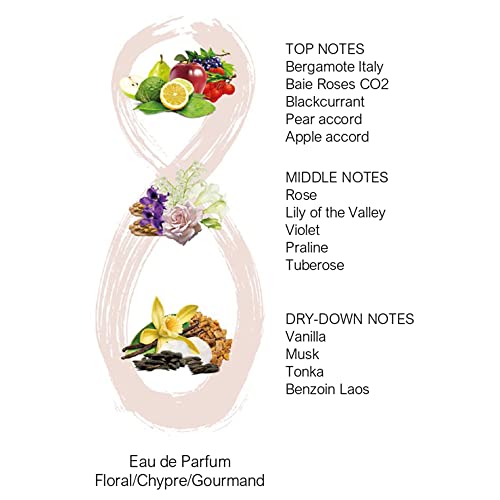 - The head notes are strong and evident with Italian beragmot, CO2 rose berries, apple and pear accords,The heart notes – rose, lily of the valley, violet, pralines and tuberose – are vibrant,Vanilla, musk, blackcurrant, Tonka bean and benzoin from Laos are the base notes: subtle and persistent, reliable like the love of a woman