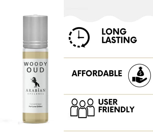 FR230 WOODY OUD perfume oil for men. 6ml roll-on bottle. Arabian Opulence. Woody/balsamic/oud/warm spicy/aromatic