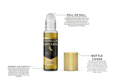 Home Fragrance FR99 VANILLA DREAMS perfume oil for her. 6ml roll-on bottle. Arabian Opulence. Sweet/Vanilla/Powdery/Balsamic/Lactonic