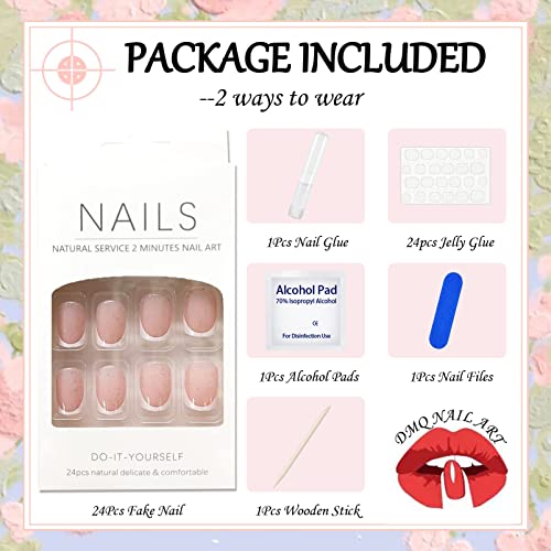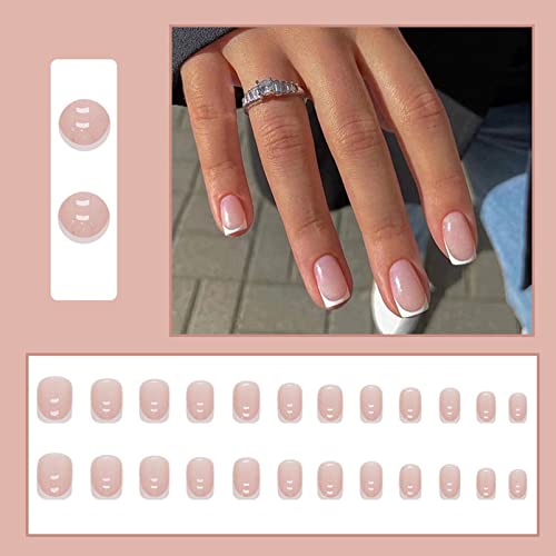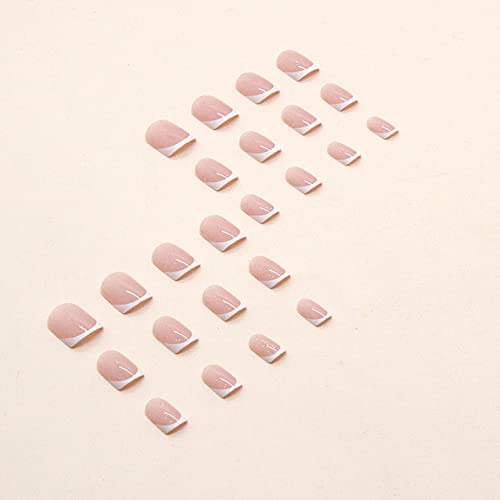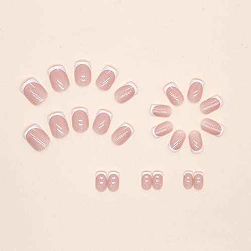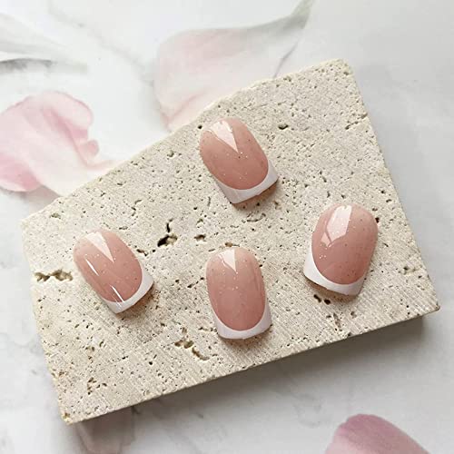 Home Nail Care French False Nails Short, 24Pcs White French Fake Nails, Square Press on Nails Pattern, Glitter French Nail Tips with Nail Glue, Squoval Stick on