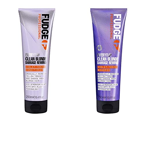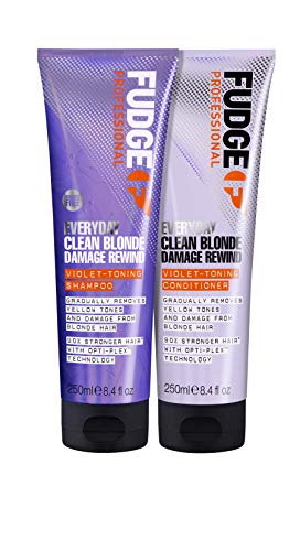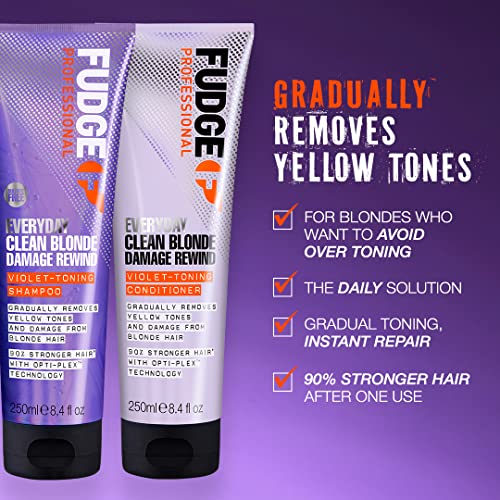 Fudge Professional Everyday Clean Blonde Damage Rewind Shampoo - Daily Purple Toning with Bond Repair, 250ml