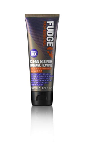 - A sulfate-free purple toning shampoo in a travel size 50 ml bottle that instantly removes yellow tones from blonde hair and suitable for vegans
