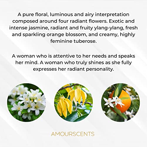 - FRESH AND SENSUAL - A pure floral, luminous and airy interpretation composed around four radiant flowers. Exotic and intense jasmine, radiant and fruity ylang-ylang, fresh and sparkling orange blossom, and creamy, highly feminine tuberose. A woman who is attentive to her needs and speaks her mind. A woman who truly shines as she fully expresses her radiant personality.