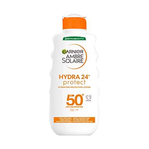- VERY HIGH PROTECTION: Ambre Solaire Hydra 24 Hour Protect Sun Protection Lotion SPF 50+ provides advanced UVA and UVB protection against sun induced skin damage and sunburn
