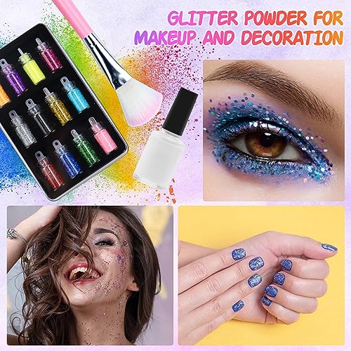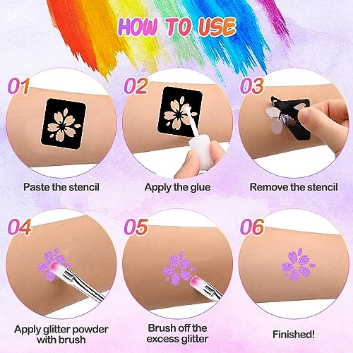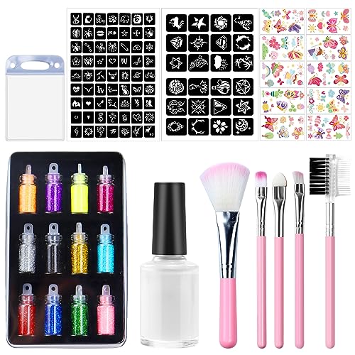 Home Make Up Geitiet Glitter Tattoos for Kids,Temporary Glitter Tattoos Kit for Kids,12 Colours Glitter, 87Stencils, 5 Brushes, 1 Glues, 10 tattoo stickers fo